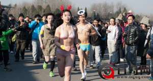 参赛者须穿着内衣裤裸跑3.5公里以完成比赛,组织者希望以此...