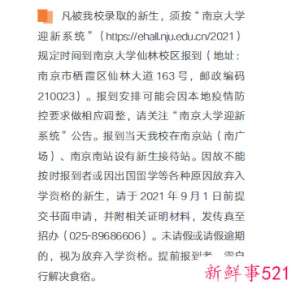 2021南京大学报到时间与要求