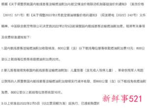 国内航线燃油附加费标准时隔一个月再调整