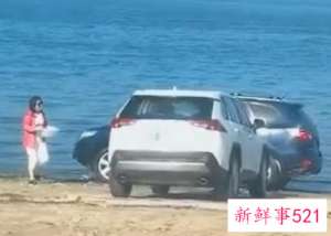 山东俩车主在海边用海水为爱车做盐浴