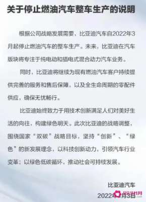 比亚迪燃油车停产,新能源成发展趋势 比亚迪燃油车停产,新能源成发展趋势,自2022年3月起宣布停止对纯燃油车的生产,也就意味着比亚迪是全球首家正式...