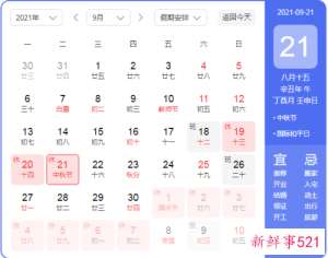 2021中秋放假时间