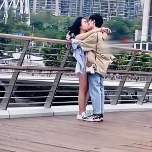 帅哥和美女亲吻(广东:情侣在街头舌吻,女生欲拒还迎主动配合,深情投入无视路人)