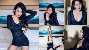 嫩模雪千紫私房黑色露乳情趣内衣血滴子遮点极致诱惑写真
