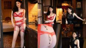 王雨纯厦门旅拍浴室吊带蕾丝...