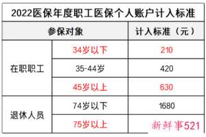 2022上海医保个人账户划入标准