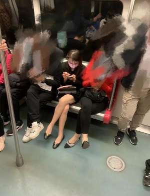 口罩年在地铁遇到的极品肉丝平底鞋妹子