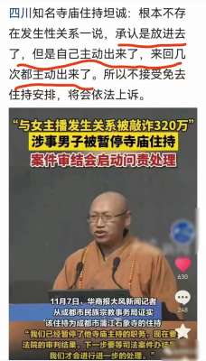 说起出家人,人们首先想到的是精进修行,慈悲为怀,吃斋念佛,心无杂念,清心寡欲,坐怀不乱。然而,这两天网上爆出的寺庙住持“与女主播发生关系被敲...
