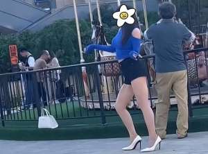 美女直播间热舞(女子穿着清凉,在游乐场热舞,傲人的身材让大爷不敢正眼看)