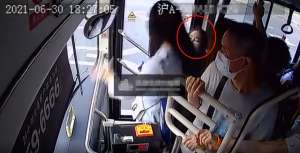 6月30日,上海的一辆公交车上,两女子当众打架互殴,周围乘...