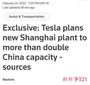 内部人士回应特斯拉将在上海建第二座工厂 内部人士回应...