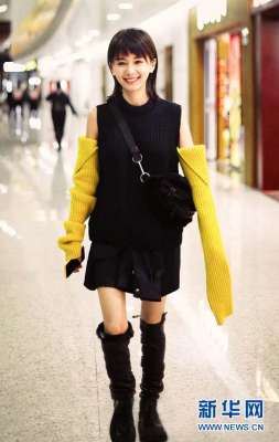 近日,王子文现身上海某机场。短裙加堆摺长靴显好身材比例...