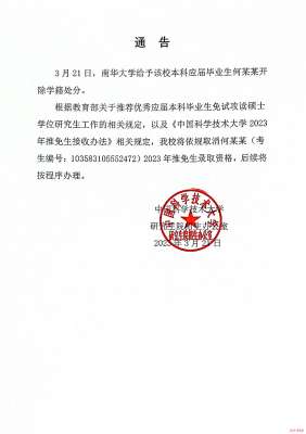 微信扫码关注中科大取消何某某推免生录取资格