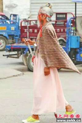 披浴巾戴红裙的洛阳关林犀利爷爷走红网络世界。