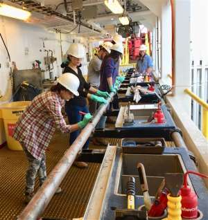 核心提示:有望解开母亲海初生之谜 大洋钻探获取的南海海底岩芯 (林间 摄影) 位于南海海下近4千米处的U1503A井口(来源:IODP) 国际科学家们在钻井平台上...