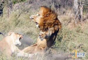 雄狮“回家”遭母狮围攻 吓得“魂不附体”仓惶撤退