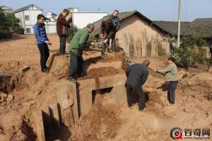修房挖出南宋古墓 墓中石刻龙虎美女