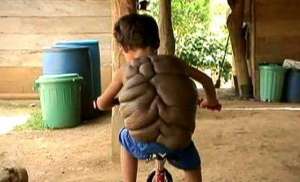 哥伦比亚男孩患怪病似背“龟壳” 手术摘除