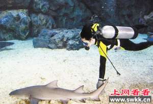 天津极地海洋世界上演“人鲨共舞”