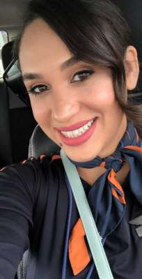 美女空姐图片(美国美女空姐容貌神似梅根风姿绰约,常被问:当了王妃还做空姐?)