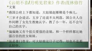 325《云胡不喜/月明见君来》作者:茂林修竹文案 燕国公府上下都知道,大姑娘赵雁卿是个痴儿。三岁才会说话,五岁了还说不太利落,国公夫人自外间聘了女先...